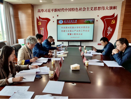 5月18日,贵州民族大学机关党委召开党建与全面从严治党工作会议暨警示教育会议。会议深入学习贯彻习近平总书记在第十九届中央纪委六次全会上的重要讲话精神、省委《关于一体推进不敢腐不能腐不想腐的指导意见》及十二届省纪委六次全会精神,传达学校党建与全面从严治党工作会议暨警示教育大会的会议精神,通报违法乱纪案例,并对2022年机关党委党建与全面从严治党工作进行安排部署。会议由机关党委书记刘汝才主持,校纪委副书记夏飞出席并发言,机关党委委员参加。