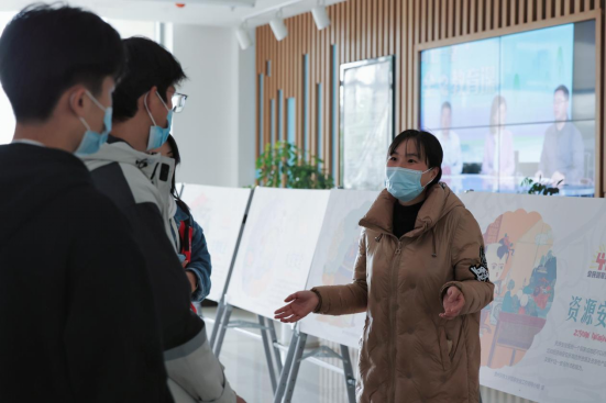 学生驻足观看并听讲解