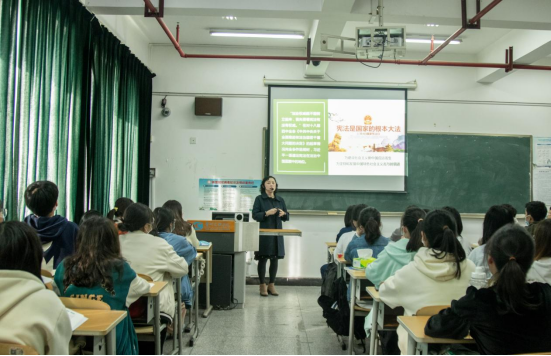 张鹏程一行来到花溪校区15号教学楼401教室,与外国语学院2022级英语专业学生共同听取由思政课教师银洁的《思想道德与法治》课程。课堂上,银洁合理运用多种教学方法,围绕宪法的产生和历史发展,地位和基本原则,实施与监督三个方面进行授课,图文并茂,由浅入深,把宪法的相关知识讲得简单透彻,通俗易懂。学生们积极参与课堂,发言踊跃。