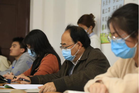 张鹏程认真听取并记录银洁的授课内容,细心观察学生的精神风貌和学习状态。