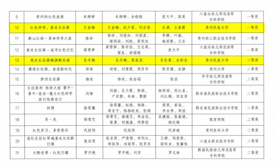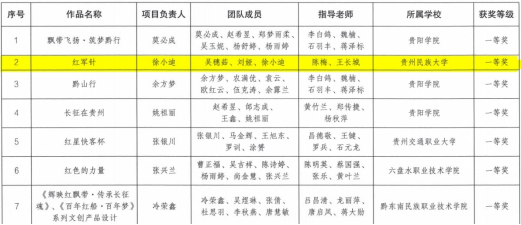 “薪火黔行 红色文创设计大赛多彩贵州”红色旅游路线设计赛道拟获奖名单(贵州民族大学师生获奖截图)